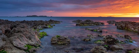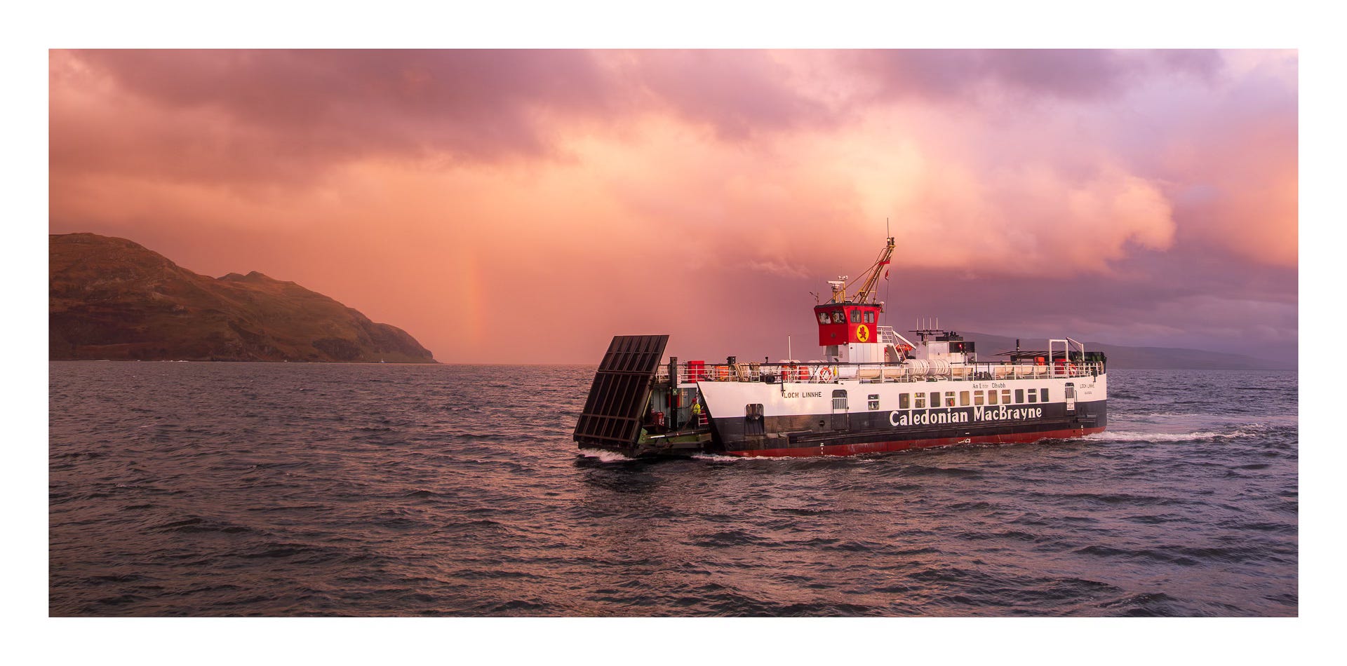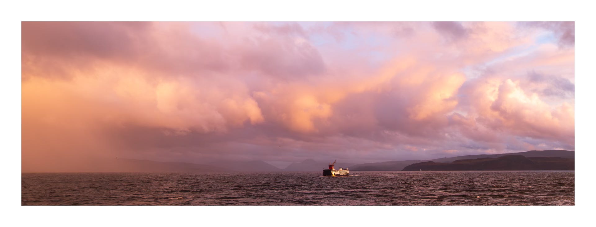 With sunset less than 30 minutes away, I’ve all but resigned myself to no photography when I notice a small change in the ambient light in the van. I peer out the window and realise there is a chance. I grab my bag and head down towards the port. The rain is horizontal, but there’s a gap on the horizon. Still a chance.