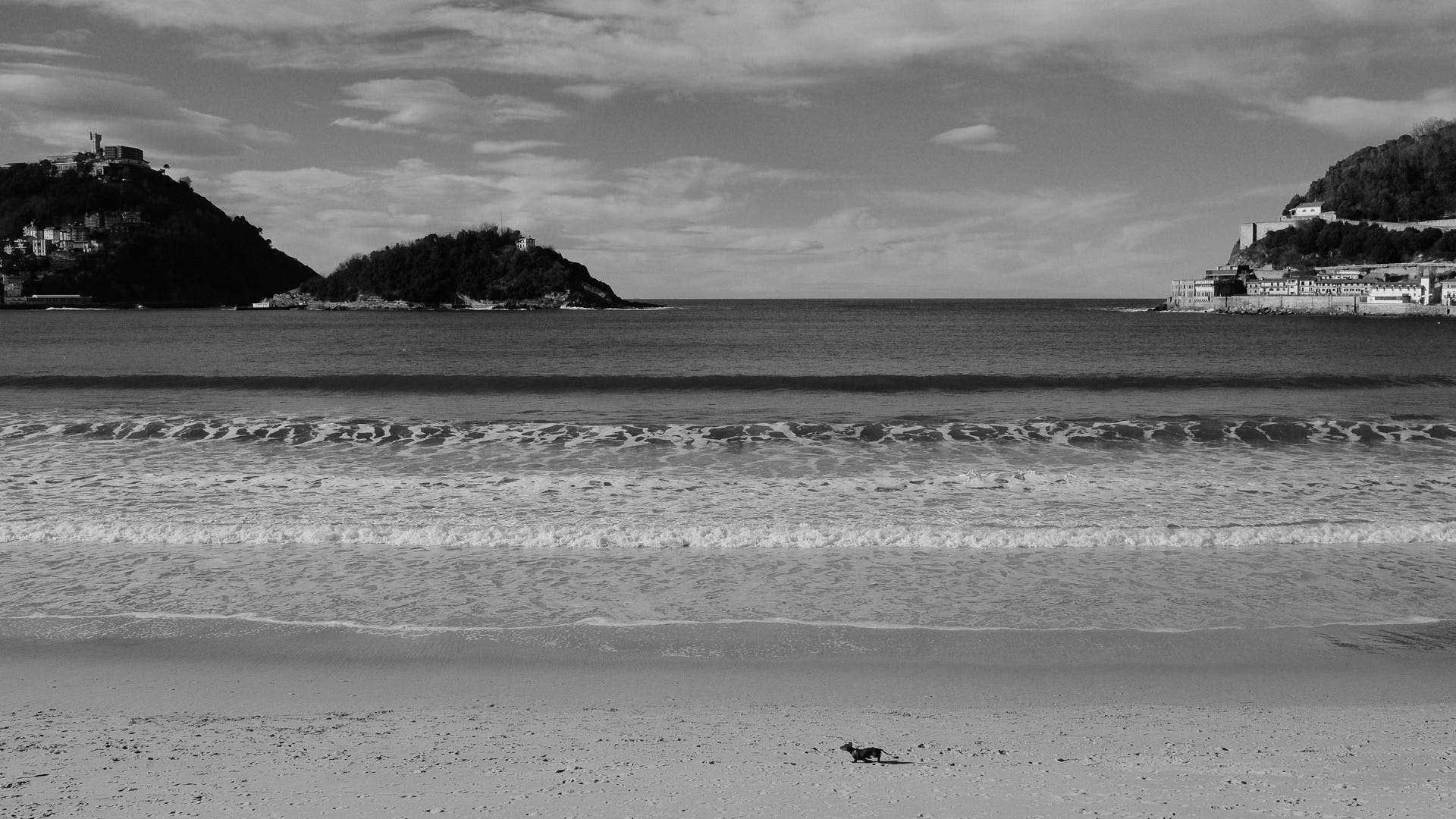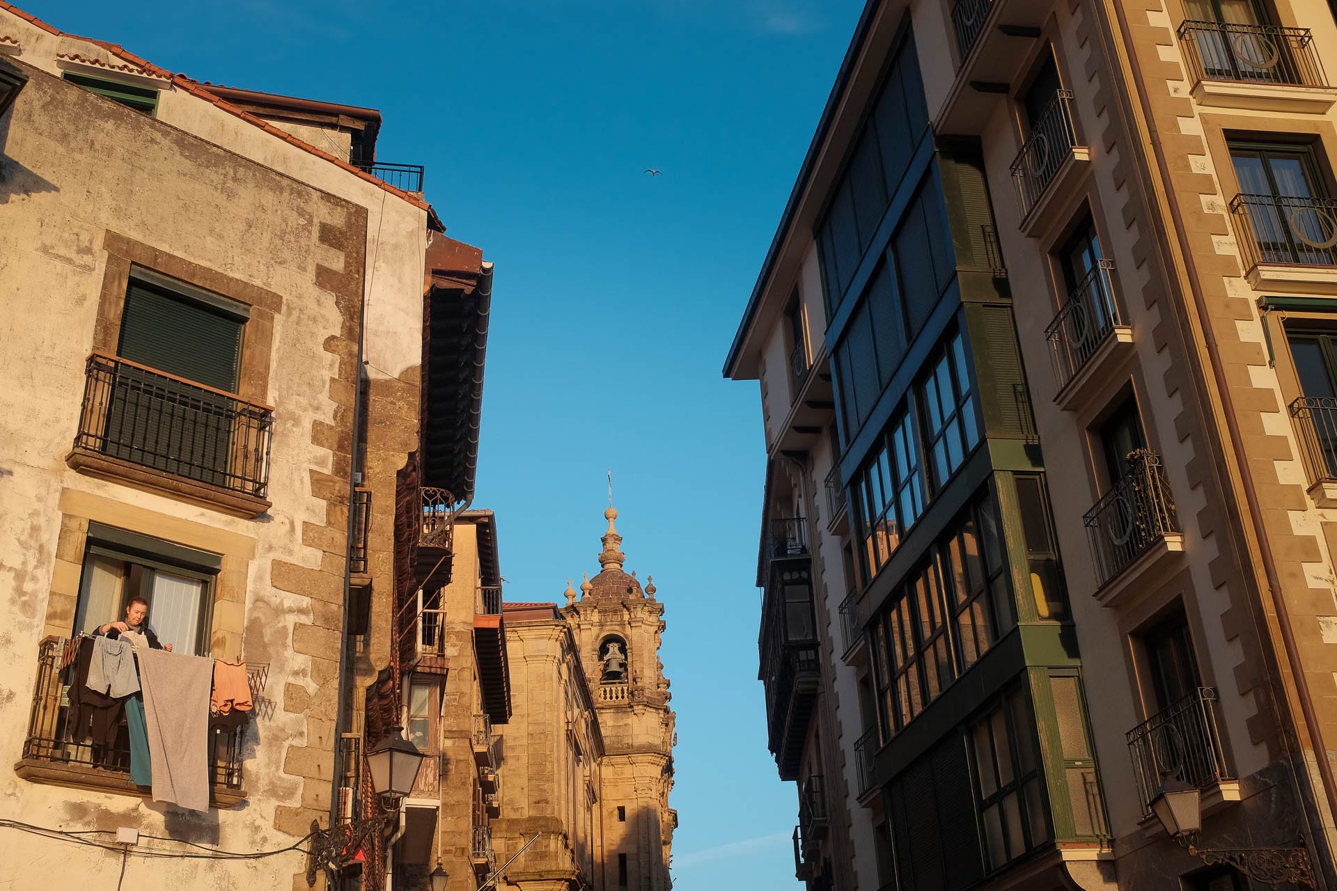 Into San Sebastián for a few days. Love it here. Although again my photography over the coming week will be mostly urban. It’s not enough to completely quieten the darkness, but at least it feels good to be consistent and show up. Weather again is mixed, although the forecasters have clearly been reading from the wrong manuscript. The light for the last hour of the day is incredible, and I’m left once again cursing my decision to leave the main cameras back in the van. Still, I use the time wisely and search out little pockets of light. I’m especially taken by the juxtaposition of the Basilica de Santa Maria del Coro and a lady going about her daily chores.