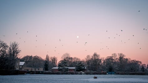 A walk in the woods. Peaceful. Slight crunch of snow under foot. I spend a bit of time watching a buzzard being mobbed by a couple of Jackdaws. Winter light illumining their plumage. Wildlife is good for the soul, although I’m sure glad I double checked the spelling there as for some reason soul had become soup.
