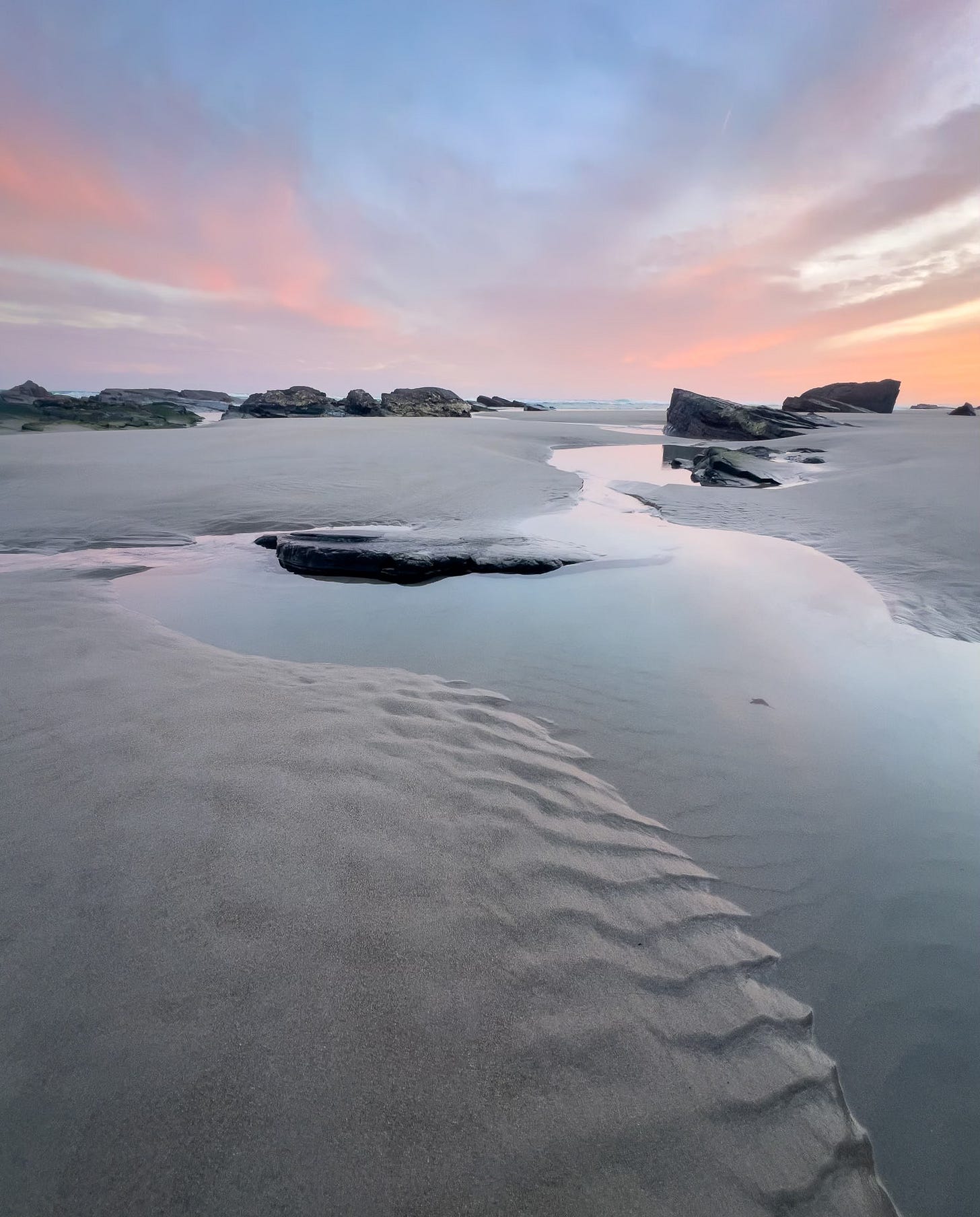 Once again the outgoing tide had left incredible beach patterns of all shapes and sizes, and I couldn’t help but stop to make a couple of images as the pre-sunrise colour developed. I’ve not shot a lot of super wide-angle images over the past five years, but sometimes I do miss it and need to resort to the iPhone.